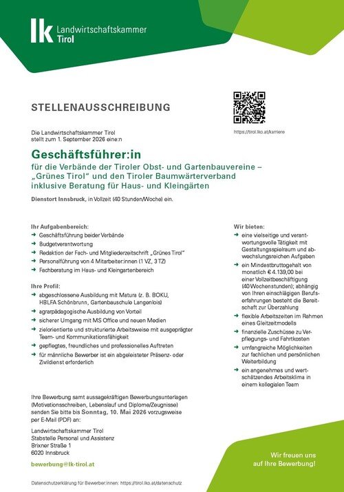 STELLENAUSSCHREIBUNG LK TIROL: Geschäftsführer:in in Vollzeit gesucht