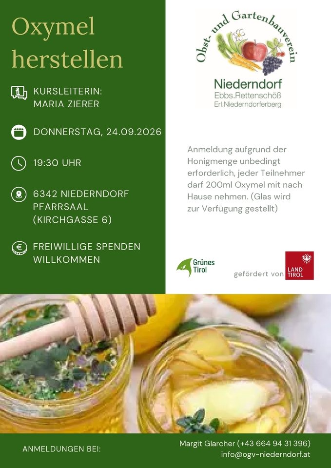 Abmeldung auf Grund der Honigmenge unbedingt erforderlich, jeder Teilnehmer darf 200 ml Oxymel mit nach Hause nehmen.