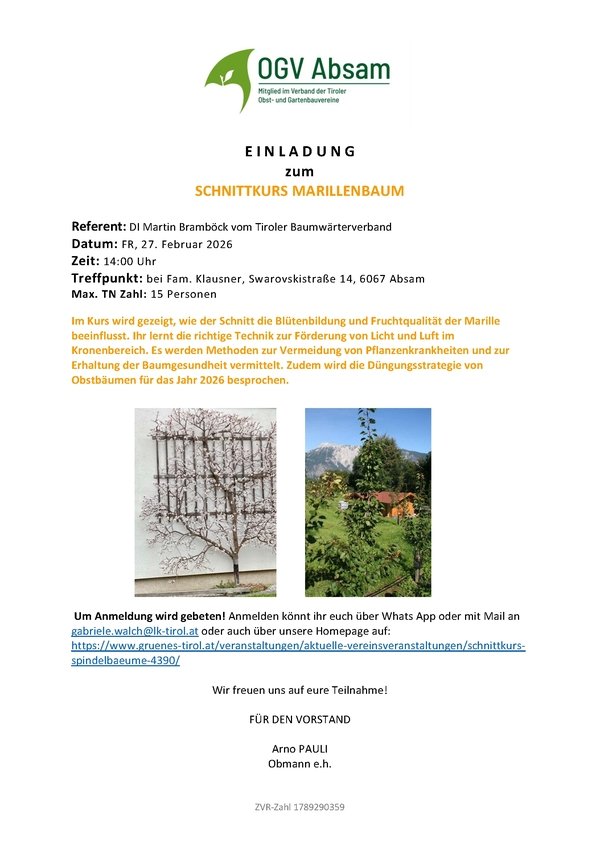 Schnittkurs Marillenbaum